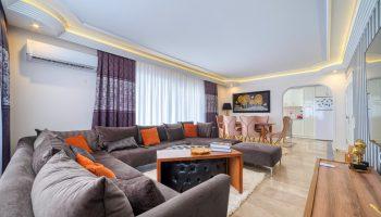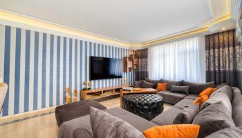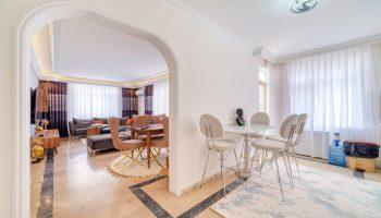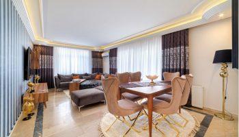 Апартаменты расположены на 4 этаже, имеют площадь 125 м2. Планировка 2+1 подразумевает под собой две спальных комнаты, гостиную которая совмещена с кухней американского типа, ванную комнату и две террасы. Продаются полностью укомплектованными мебелью, бытовой техникой, кухонным гарнитуром с гранитной рабочей поверхностью и ванной комнатой. Напольное покрытие высококачественная керамическая плитка. В апартаментах сделан дизайнерский ремонт.