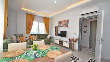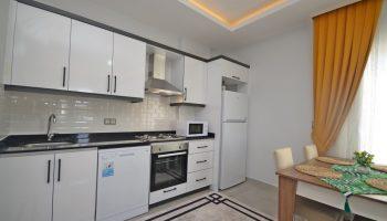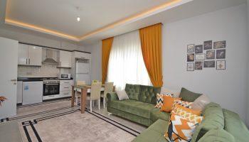 Двухкомнатная квартира расположена на 2 этаже, имеет площадь 55 м2. Планировка 1+1 подразумевает под собой спальную комнату, гостиную которая соединена с кухней американского типа, ванную комнату и террасу. Продается полностью укомплектованной мебелью, кухонным гарнитуром с гранитной рабочей поверхностью и ванной комнатой. Напольное покрытие высококачественная керамическая плитка.