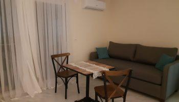 Апартаменты площадью 60 м2 расположены на 1 этаже. Состоят из гостиной совмещенной с кухней американского типа, спальной комнаты, ванной комнаты и террасы.