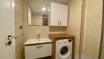Площадь квартиры расположенной на 9 этаже 90 м2. Планировка 2+1 подразумевает две спальных комнаты, гостиную которая совмещена с кухней американского типа, ванную комнату и террасу