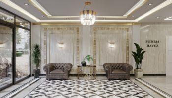 Для проживающих предусмотрены открытый и крытый бассейны, сауна, турецкий хамам, римская парная, тренажерный зал, детская игровая комната.