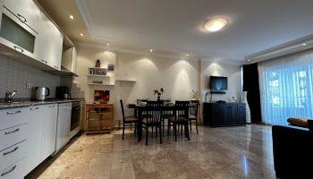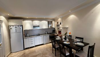 Стильные апартаменты площадью 120 м2 располагаются на 2 этаже. Имеют планировку 2+1, состоящую из двух спальных комнат, гостиной совмещенной с кухней американского типа, двух ванных комнат и террасы.