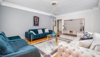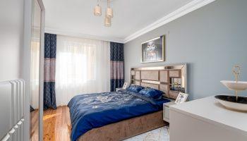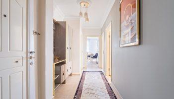 Апартаменты площадью 120 м2 располагаются на 2 этаже и имеют планировку 2+1. Планировка подразумевает под собой две спальни, гостиную, кухню, две террасы и ванную комнату. Кухня в данном предложении имеет отдельное расположение. В апартаментах напольное покрытие –первоклассная керамика, в спальных комнатах и гостиной — высококачественный ламинат.