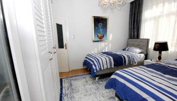 Площадь апартаментов 100 м2, расположены на 5 этаже. Планировка 2+1 подразумевает две спальных комнаты, гостиную совмещенную с кухней, две ванных комнаты и три террасы.
