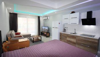 Меблированная студия располагается в жилом комплексе района Махмутлар в 50 метрах от моря. В районе есть 3 основные улицы: Барабарос, Ататюрк и центральная прибрежная улица шоссе Анталия – Мерсин. В Махмутларе есть все что нужно для комфортного проживания и отдыха: фермерский рынок по вторникам и субботам, магазин с русскими продуктами, супермаркеты, рестораны, дискотеки, СПА — салоны, школы, детские сады и много другое. Пляж преимущественно галечный и оборудован всем необходимым.