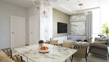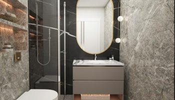 В проекте представлены также жилые апартаменты планировки 1+1 — состоящие из спальной комнаты, гостиной, которая совмещена с кухней американского типа, ванной комнаты и террасы.