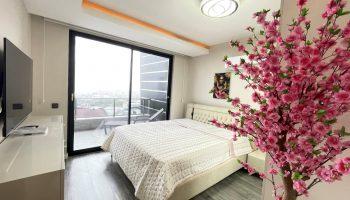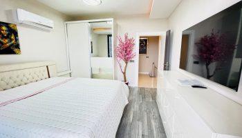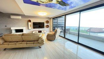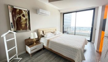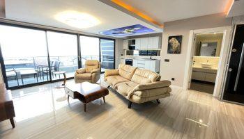 Меблированные апартаменты располагаются на 4 этаже и имеют площадь 130 м2. Планировка 2+1, подразумевает под собой две спальных комнаты, большую гостиную совмещенную с кухней американского типа, две ванных комнаты и террасу. Продаются меблированными, с укомплектованным санузлом и кухонным гарнитуром. Напольное покрытие – высококачественная керамическая плитка.