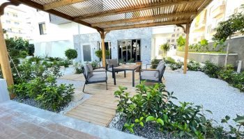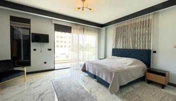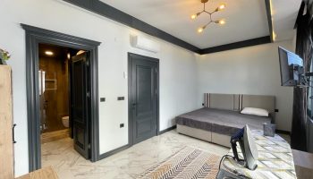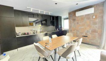 Меблированные двухуровневые апартаменты расположены на 1 этаже, имеют площадь 160 м2. Планировка 2+1 предусматривает на первом уровне большую гостиную которая совмещена с кухней американского типа, ванную комнату и террасу, на втором уровне две свальных комнаты, каждая из которых имеет собственную ванну/ комнату.