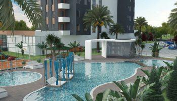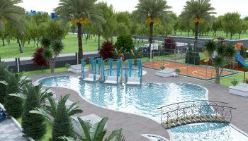 Данный проект расположен на закрытой территории и обеспечивает безопасность и комфорт для проживания. Для автомобилей предусмотрена открытая парковка. На территории есть беседки для отдыха, где можно провести время с друзьями и близкими. Для детей есть детская площадка и детский бассейн. Рядом с водными развлечениями также есть мини аквапарк, открытый бассейн с зоной с шезлонгами, открытая спортивная площадка и фитнес-центр внутри комплекса. А после занятий спортом можно расслабиться в сауне или в хамаме, который всегда доступен для жильцов жилого комплекса.