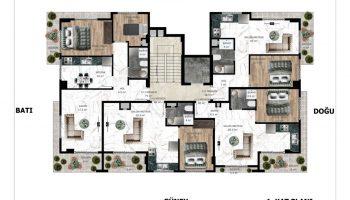 В проекте представлены апартаменты различных планировок, включая 1+1 и 3+1. Площадь апартаментов варьируется от 48 до 143 квадратных метров, предоставляя достаточно пространства для комфортного проживания. Вы сможете выбрать подходящий вариант в соответствии с вашими потребностями и предпочтениями. Проект состоит из 4-х этажей, что создает уютную и спокойную атмосферу для жильцов. С прекрасными видами на природу, бассейн и город, вы сможете наслаждаться окружающей обстановкой в любое время.