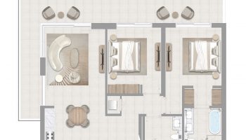 Комплекс предлагает коллекцию премиум-класса апартаментов с 1 и 2 спальнями, выполненных в современном стиле. Апартаменты оформлены с изысканностью, с открытыми планировками и панорамными окнами, обеспечивая бесконечные виды на жилое пространство и окружающий пейзаж. Внутренний дизайн подобран в идеальной цветовой гамме, создавая уют и элегантность в каждой детали.