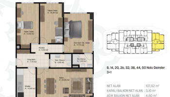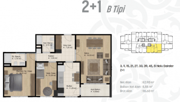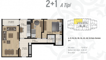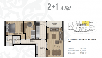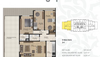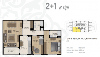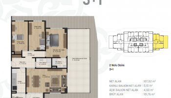 Комплекс предлагает разнообразные планировки квартир, включая 2+1 и 3+1, чтобы удовлетворить потребности различных семей. Каждая квартира имеет от 1 до 2 ванных комнат и от 1 до 2 балконов, создавая комфортные условия для жизни и отдыха. Площадь апартаментов варьируется от 111 до 152 квадратных метров, обеспечивая достаточно пространства для комфортной жизни. Комплекс состоит из 9 этажей и предлагает прекрасные виды на море, природу, бассейн и город. Разнообразие видов позволяет выбрать наиболее привлекательный для вас пейзаж.