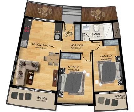 Жилой комплекс предлагает квартиры различной площади: от 88 до 103 квадратных метров. Квартиры построены с использованием качественных строительных материалов и отличаются лаконичным дизайном интерьера. Каждая квартира сдается с полной чистовой отделкой. В квартирах предусмотрено отопление полов на кухне, в гостиной и ванной комнате для дополнительного комфорта. Квартиры на первом этаже имеют личные террасы, предоставляя уникальную возможность наслаждаться свежим воздухом и природой прямо у себя дома.