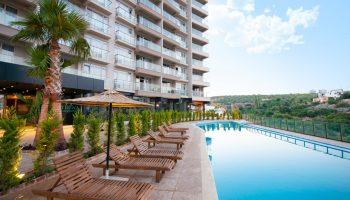 Социальная инфраструктура комплекса впечатляет: 4 открытых бассейна с аквапарком, 2 крытых бассейна, 2 кинотеатра, фитнес-зал площадью 150 м², 2 ресторана, Услуги консьержа 24/7, бар на крыше, спа и хаммам, боулинг-клуб, поле для мини-гольфа, поле для фанкидо, детские развлекательные зоны.