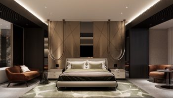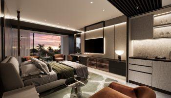 Интерьер апартаментов разработан с максимальной тщательностью в лучших традициях пятизвездочных отелей. Отличительной чертой является наличие собственной кухни и широкого гардеробного помещения. Каждый аспект интерьера отражает сочетание эстетики, функциональности и использования высококачественных отделочных материалов. Панорамные окна в апартаментах предоставляют потрясающие виды на океан. Интеллектуальная система управления позволяет контролировать освещение, кондиционирование, шторы и телевизор голосом. Помимо этого, в стоимость включена современная мебель и бытовая техника для каждой виллы, что придает дополнительное удобство будущим владельцам, освобождая их от необходимости заботиться о мебели и приобретении бытовой техники.