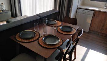Это уютное жилье предлагает трехкомнатную планировку (2+1) с площадью 80 м². Квартира оформлена мебелью, что обеспечивает готовность к проживанию. Балконы предоставляют возможность наслаждаться видами на горы, природу и бассейн.