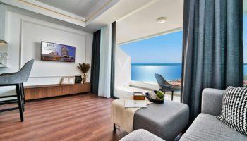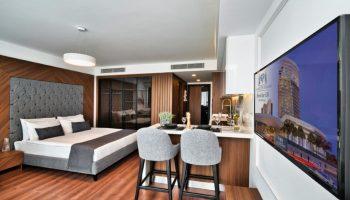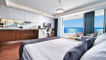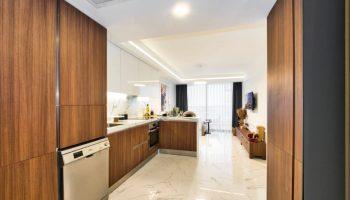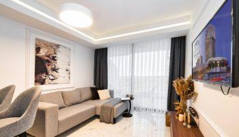 Площадь квартиры составляет 54 м², она оформлена в стиле современной элегантности и включает в себя одну спальню (1+1). Квартира поставляется с мебелью, которая включает в себя современные и функциональные элементы, создающие комфортную обстановку. Балкон предоставляет возможность наслаждаться видами на море, природу и бассейн.