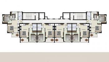 Проект представляет собой один блок с 54 квартирами. Он состоит из квартир с планировками 1+1 и 2+1, с площадью от 60 до 84 квадратных метров. Каждая квартира в проекте имеет современную отделку, включая подвесные потолки, кухонную мебель, шкафы в прихожей и в ванных комнатах, а также кухонные столешницы. В квартирах предусмотрена проводка для кондиционеров. Сантехника высшего качества установлена как в ванных комнатах, так и на кухне. Полы в квартирах покрыты кафельной и паркетной плиткой.
