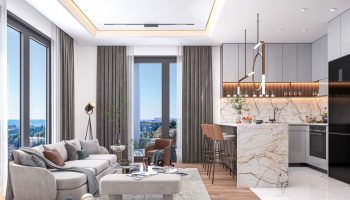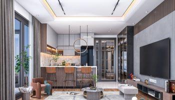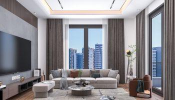 Проект состоит из двух блоков, каждый из которых имеет 12 этажей. В нем представлены различные типы квартир, включая 1+1 и 2+1. Площадь квартир варьируется от 43 до 110 квадратных метров. Внутренний интерьер квартир отличается современным дизайном и включает в себя подвесные потолки, кухонные шкафы, гардеробы, а также качественную сантехнику и душевые кабины. Стены окрашены водостойкой краской, обеспечивая долговечность и стильный внешний вид квартир.