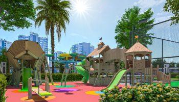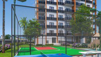 Комплекс предлагает разнообразную инфраструктуру для комфортной жизни и отдыха. Здесь вы найдете открытый бассейн, детскую игровую площадку, камелии, баскетбольную площадку и фитнес-центр. Также предусмотрена открытая парковка для автомобилей.