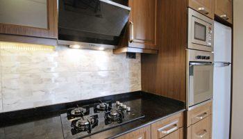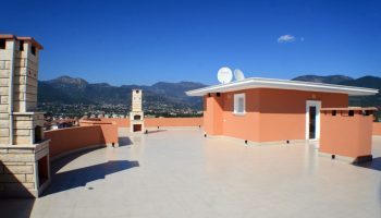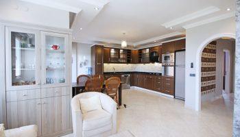 Эти просторные апартаменты с тремя комнатами предлагают площадь в 120 квадратных метрах, расположены на четвертом этаже. Стильная мебель создает уютную атмосферу, а два балкона обеспечивают возможность наслаждаться живописными видами на природу и бассейн. Особенно привлекательным является просторный балкон с камином и грилем, создающим уникальное пространство для отдыха и вечерних поединков на свежем воздухе.