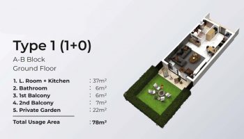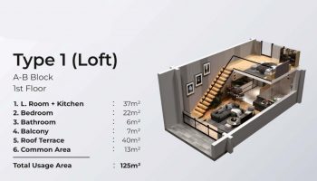 Проект охватывает 29,750 кв.м и предлагает разнообразные апартаменты, включая студии, 1+1 и лофты. Каждый аспект дизайна апартаментов учтен в соответствии с архитектурой региона, обещая повысить качество жизни. Площадь апартаментов варьируется от 74 до 125 кв.м.