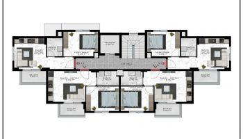 Общая территория проекта составляет 624 м2 с одиночным блоком высотой 5 этажей. Квартиры размещаются на разных уровнях, включая двухуровневые варианты. Проект предлагает 16 квартир, включая 1+1 площадью 43-50 м2 и уникальные 1+1 на первом этаже с садовой террасой или зимним садом, выполненными по индивидуальному дизайн-проекту. Также в наличии двухуровневые апартаменты 2+1 площадью 73-77 м2.