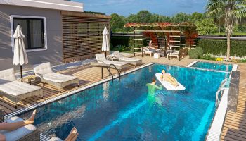 Проект обеспечивает легкую инфраструктуру, что снижает ежемесячные затраты на обслуживание после сдачи объекта в эксплуатацию. В комплексе предусмотрены детская игровая зона, открытый бассейн, парковка, барбекю, фитнес-зал и стол для настольного тенниса. Благодаря удачному расположению, владельцы могут рассчитывать на регулярный доход от аренды своей недвижимости.