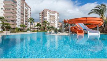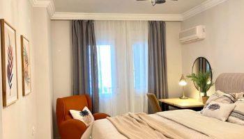 Апартаменты предлагают просторные трехкомнатные планировки, площадью 145 м², обеспечивая комфортное проживание для всей семьи. Два балкона предоставляют возможность наслаждаться прекрасными видами на природу и бассейн. Апартаменты полностью меблированы современной и стильной мебелью, предназначенной для обеспечения полного комфорта и уюта. Каждая комната оформлена с учетом функциональности и визуального восприятия, а встроенная мебель включает в себя элементы, спроектированные с умом для максимальной практичности. Это создает гармоничное пространство, где красота сочетается с практичностью.