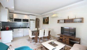 Апартаменты с двумя спальнями и гостинной соеденной с кухней охватывают 93 м² и расположены на первом этаже. Квартира полностью меблирована, придавая ей стильный и комфортный вид. С двумя ванными комнатами и двумя балконами, она предлагает прекрасные условия для жизни и отдыха.