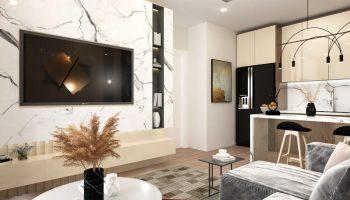 Эта квартира, олицетворяющая современность и комфорт, представляет собой просторное помещение с одной спальней, уютной гостиной, объединенной с современной кухней, стильным санузлом и удобным балконом. Общая площадь квартиры составляет 64 квадратных метра. В стоимость квартир входит чистовая отделка, кухонный гарнитур с гранитной столешницей, полностью оформленные ванные комнаты, входные и межкомнатные двери, стеклопакеты, проводка и др.