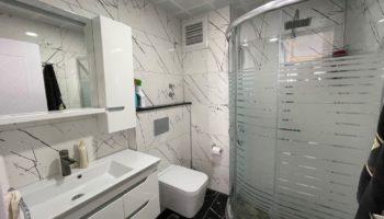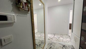 Во всей квартире сделан современный ремонт: на полу лежит кафель, на потолках выполнен дизайн с подсветкой. Кухня укомплектована мебелью, ванные комнаты полностью оформлены.