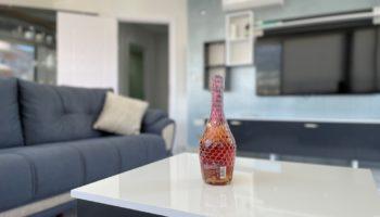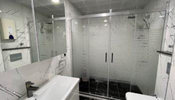 Планировка 3+1: Гостиная, совмещенная с кухней, три санузла с душевыми кабинками, два балкона. Один из балконов застеклен, там проведена вода и имеется раковина. Это помещение можно использовать как столовую.