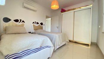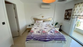 Трехкомнатные апартаменты предоставляют уютное и комфортное жилье площадью 110 кв.м. Расположенные на 7-м этаже, они обеспечивают великолепный вид на море, природу и бассейн. С двумя балконами, вы можете наслаждаться свежим воздухом и живописными пейзажами. Квартира полностью меблирована, что делает ее готовой к проживанию. В просторной гостиной вы найдете удобный и комфортный дивана. Здесь также предусмотрен телевизор, создавая идеальное место для отдыха и развлечений. Спальные комнаты обставлены современной мебелью, включающей в себя кровати, гардеробные шкафы и тумбочки. Кухня оборудована современной бытовой техникой, такой как холодильник, духовка, варочная панель, микроволновая печь и посудомоечная машина. В ванной комнате установлены качественная сантехника и современный душ. Зеркало с подсветкой и стильная мебель добавляют уюта в этом пространстве.