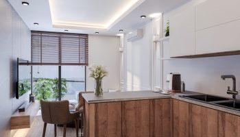 Проект предлагает современные квартиры 1+1 площадью 60 м². Внутреннее пространство включает роскошные внутренние двери, стильную кухню, высококачественные отделочные материалы, ПВХ окна с двойным остеклением, теплоизоляцию, душевую кабину, роскошные мраморные умывальники Hilton, гардеробную и многое другое. Каждая квартира оборудована роскошной мебелью, современной кухней, высококачественными материалами и инновационными технологиями. Отделка пола из керамики, столешница из кварца, центральная спутниковая система, видеодомофон — всё это создает атмосферу современного и уютного жилья.