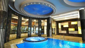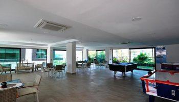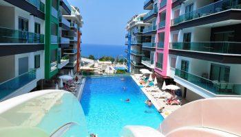 Комплекс обладает разнообразной инфраструктурой для активного отдыха и расслабления. Здесь есть беседки для отдыха, зеленый сад, кафе и ресторан, кинотеатр и массажный кабинет для вашего удовольствия. Также предусмотрены открытый бассейн, аквапарк, баскетбольная и теннисные площадки, футбольное поле и многое другое для занятий спортом и активного отдыха.