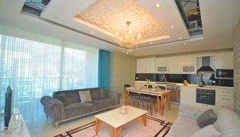 Квартира площадью 120 м², оснащена двумя спальнями, двумя ванными комнатами и двумя балконами, идеально подходит для семейного проживания или отдыха. Меблированный с изысканным вкусом, каждый элемент интерьера спроектирован так, чтобы создать атмосферу роскоши и комфорта. Просторные жилые помещения идеально подходят для развлечений или расслабления после дня, проведенного на пляже. Каждая комната в этой квартире укомплектована высококачественной мебелью и современной бытовой техникой, что делает ваше пребывание здесь максимально комфортным и беззаботным с первых минут. Просторная кухня оборудована кухонной техникой, включая холодильник, плиту, микроволновую печь и посудомоечную машину, предоставляя все необходимое для приготовления еды и проведения семейных ужинов. В гостиных и спальнях установлены кондиционеры, обеспечивающие комфорт в жаркие летние дни, а в ванных комнатах предусмотрены современные сантехника и стиральная машина. Таким образом, квартира предлагает полный набор удобств для жизни на высшем уровне, позволяя вам наслаждаться каждым моментом пребывания здесь без необходимости дополнительных покупок или обустройства.