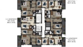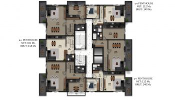 Новый проект предлагает разнообразие квартир, которые удовлетворят любые ваши нужды и желания. От компактных 1+1 апартаментов площадью 59 кв. м до роскошных 3+1 дуплексов площадью 140 кв. м, каждая квартира отражает безупречный стиль и качество. Используемые материалы и просторные планировки создают атмосферу роскоши и комфорта.