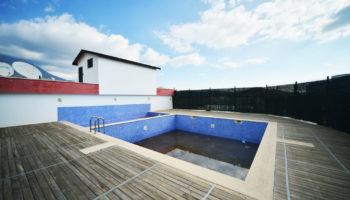 Комплекс состоит из двух жилых блоков на закрытой территории. На крыше дома есть бассейн с детским отделением. Для владельцев автомобилей предусмотрена парковка.
