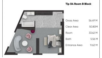 Разработанный в сотрудничестве с мировой пятизвездочной гостиничной сетью, этот комплекс предлагает доступ к выдающимся социальным объектам, делая его одним из лучших вариантов для инвестиций в районе. Проект занимает территорию в 8800 м² и состоит из четырёх блоков, каждый из которых предназначен для различных целей. Блоки А и В1 предназначены для гостиничных резиденций и общественных зон с круглосуточным доступом к выставочному центру. Блок В2 включает бизнес-центр и офисы, а блок С ориентирован на медицинский туризм и оздоровление.