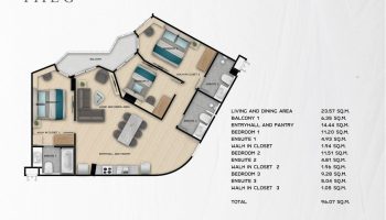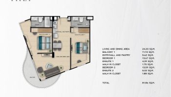 Комплекс предлагает разнообразие апартаментов от студий до трехкомнатных квартир с площадью от 29 до 96 м². Все апартаменты выполнены с открытой планировкой, просторными террасами и окнами от пола до потолка, обеспечивающими невероятные виды и естественное освещение. Интерьеры апартаментов выполнены по последнему слову дизайна, предлагая жителям современное и комфортное пространство для жизни.