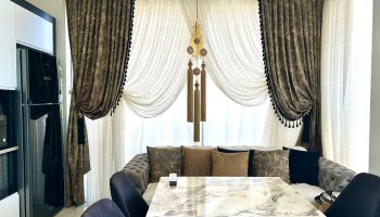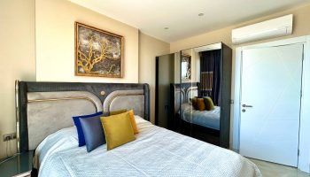Квартира площадью 86 м² на первом этаже включает в себя две спальни и одну ванную комнату, а также уютный балкон с видом на море и город. Квартира оснащена современной мебелью, которая сочетает в себе стиль и функциональность. Каждый элемент интерьера подобран с учетом максимального комфорта и эстетической привлекательности. Элегантные мебельные гарнитуры, удобные диваны и стильные стулья создают приятную атмосферу для жизни и отдыха. В спальнях установлены просторные кровати с высококачественными матрасами, обеспечивающими идеальные условия для сна. Каждая деталь в дизайне квартиры продумана так, чтобы Вы чувствовали себя как дома с первого момента.