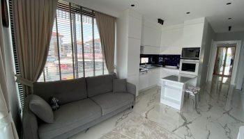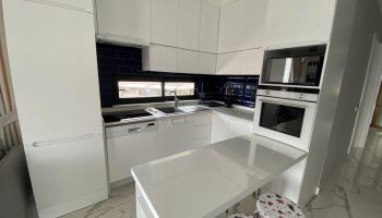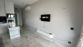 Квартира площадью 55 м² предлагает уютную планировку с одной спальней, одной ванной комнатой и балконом. С балкона открывается живописный вид на море и городские пейзажи. В интерьере этой квартиры преобладает стиль минимализма, который отличается простотой, функциональностью и элегантностью. Каждый элемент мебели тщательно подобран, чтобы создать ощущение простора и света. Прямые линии, нейтральные цвета и отсутствие излишеств подчеркивают современный характер пространства. Мебель не только красива, но и максимально функциональна, каждый предмет вносит свой вклад в общую гармонию и комфорт жилища. Например, удобные диваны и кресла обеспечивают идеальное место для отдыха, а стильные шкафы и полки позволяют эффективно использовать каждый квадратный метр.