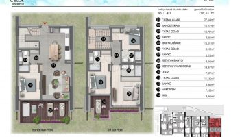 Резиденции расположены в бухте Тилкичик на берегу моря и предлагают уникальные частные резиденции с видом на море и залив. Предлагаются различные варианты аренды и покупки, включая квартиры с частным садом и частной террасой на крыше. В комплексе имеются варианты квартир 1+1, 2+1 Duplex, 3+1 Duplex и 4+1 Duplex. Площадь резиденций варьируется от 77 м² до 224 м².