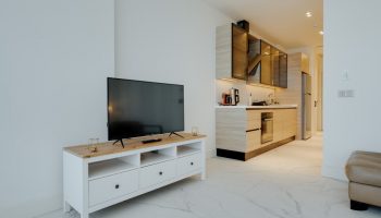 Все квартиры меблированы и оснащены современной кухонной техникой, кондиционерами, системой «умный дом», а также спутниковым ТВ. Система безопасности включает камеры видеонаблюдения и круглосуточное наблюдение.