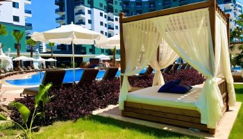 Двухкомнатные апартаменты площадью 55 м² в Махмутларе предлагают все, что нужно для комфортной жизни и отдыха, прямо на территории комплекса с отельной инфраструктурой.