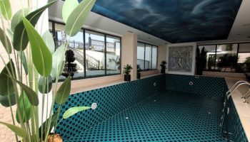 Инфраструктура комплекса включает в себя разнообразные удобства для активного и расслабляющего отдыха. Вы сможете воспользоваться открытым и закрытым бассейном, детским бассейном, зонами отдыха и барбекю, а также зоной отдыха с шезлонгами. Для поддержания физической формы предусмотрен фитнес-центр.
