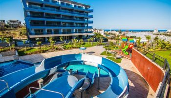 Жилой комплекс, в котором находится квартира, предлагает обширную инфраструктуру, чтобы удовлетворить любые ваши потребности и сделать ваше пребывание максимально комфортным. Здесь вы найдете аквапарк, который станет отличным местом для отдыха в жаркую погоду, а также закрытый и открытый бассейны для удобства в любое время года.