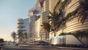 Архитектурный дизайн проекта был разработан совместно с японским бюро Nikken Sekkei, привнеся гармоничное сочетание ближневосточной элегантности и японского минимализма. Отделка с использованием современных высококачественных материалов подчеркивает эксклюзивность и уникальность каждой резиденции. Просторное лобби с потолками высотой 42 метра и лаунж-зоны создают атмосферу премиум-класса.