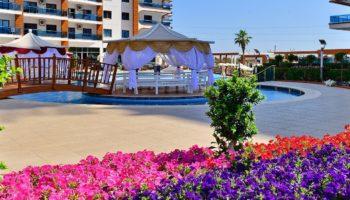 Комплекс находится на расстоянии 1800 метров Средиземного моря, в экологически чистом, спокойном районе, в окружении природных красот и чистого воздуха.
